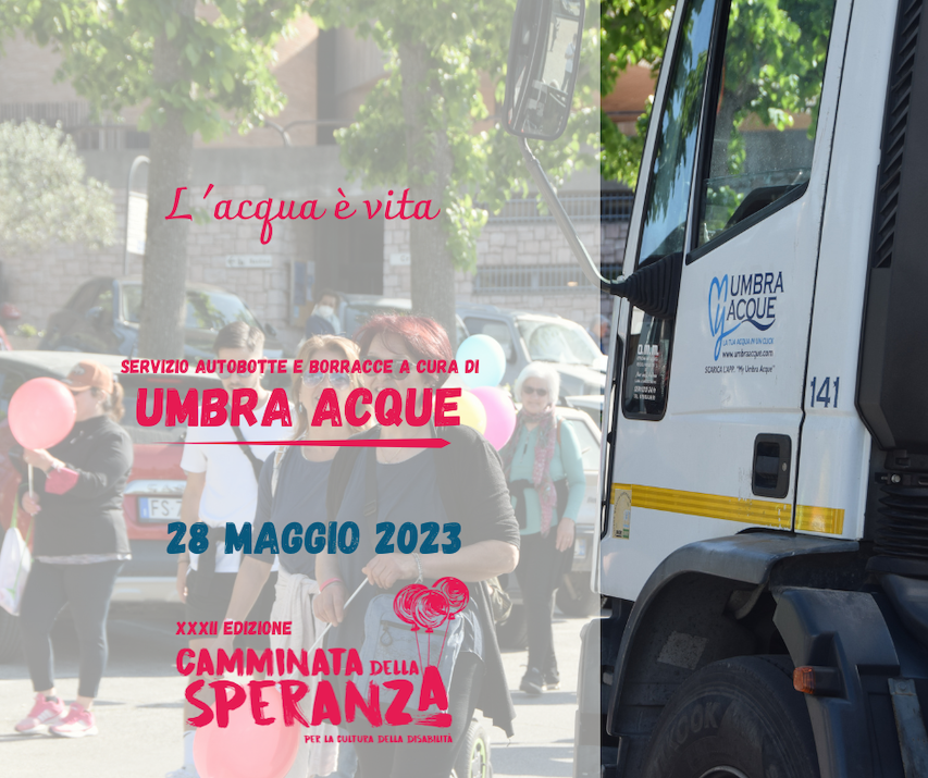 Umbra Acque collabora all'evento mettendo a disposizione un'autobotte e la fornitura di borracce per il ristoro dei partecipanti.
